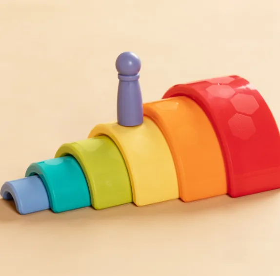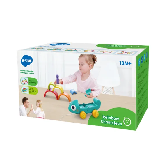 Cameleonul curcubeu a pregătit pentru cei mici 3 jucării interesante: un trăgător vesel, un balansier și un puzzle colorat cu cercuri. Jucăria este prezentată sub forma unei platforme tematice pe care sunt așezate 7 elemente colorate. Oferă libertate creativă completă și permite utilizarea elementelor de joc cum dorește copilul: se pot construi diverse structuri menținând echilibrul sau se pot crea forme interesante conform instrucțiunilor. Indiferent de jucăria aleasă, aceasta va capta atenția copilului și va umple timpul de joacă cu emoții vibrante.