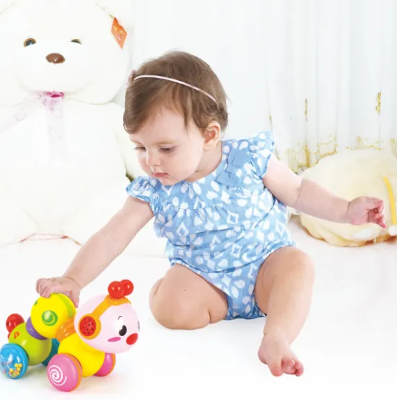 Mișcare: Omida se mișcă ușor pe roțile sale, încurajându-l pe copilul dumneavoastră să o urmeze.