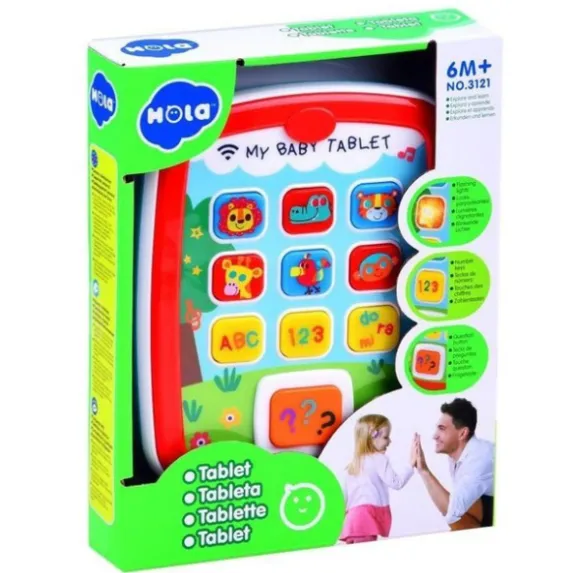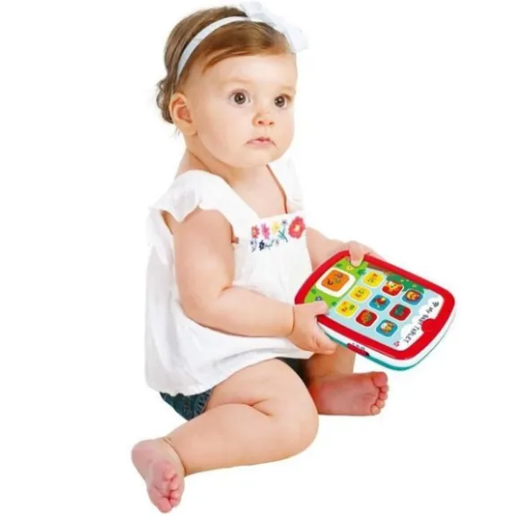 Dezvoltarea senzorială: Tableta îi prezintă bebelușului numerele, literele și animalele prin muzică și efecte sonore.