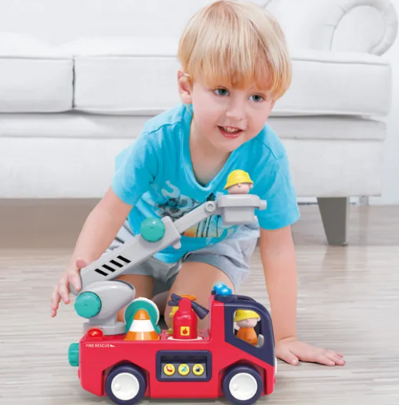 Multifuncțional: Echipat cu roți omnidirecționale, scară retractabilă, două figuri de pompieri, trei butoane pentru efecte sonore și muzică și patru instrumente de pompieri. Uneltele pot fi scoase și introduse, ceea ce dezvoltă abilitățile motorii fine. Scara retractabilă este reglabilă în lungime, înălțime și direcție.