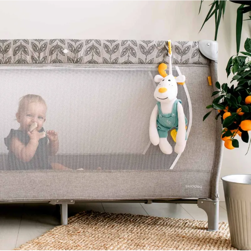 Jucăria muzicală Sovn este o jucărie deosebită care vine în complect cu un pandantiv practic, un dispozitiv de dentiție discret și o cutie muzicală ascunsă pentru a vă liniști și a vă adormi copilașul.