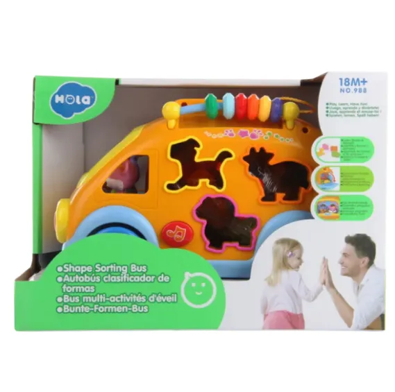 Jucărie sortator „Autobuzul vesel” de la Hola Toys — este o jucărie educativă multifuncțională, destinată copiilor de la 18 luni în sus.