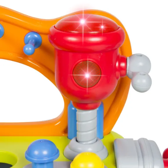 Instrumente: Faceți cunoștință pe micuț cu noțiunile de bază ale uneltelor cu un set de unelte de jucărie, inclusiv un fierăstrău și un burghiu care strălucesc și emit sunete realiste. Setul include patru unelte: un ciocan, o șurubelniță, o cheie și o clemă. Există, de asemenea, un accesoriu practic pentru a exersa ciocănitul, înșurubarea și strunjirea.