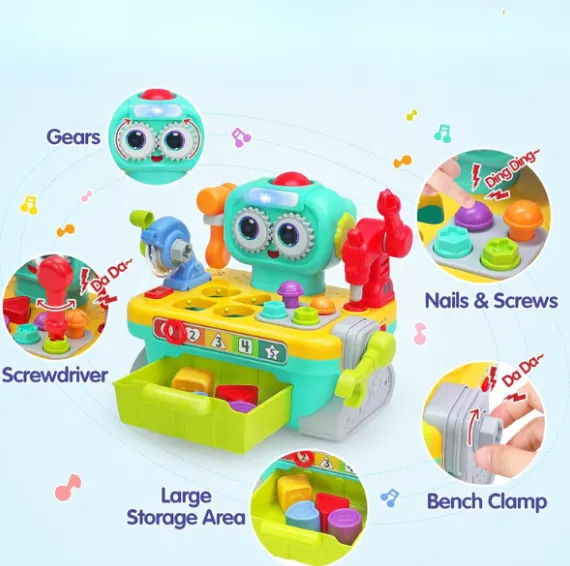 Sorter interactiv „Robot atelier” – o jucărie neobișnuită sub forma unui banc de lucru educațional, care va ajuta copilul să înțeleagă ce este un atelier, bucurându-se de culorile luminoase și formele neobișnuite!