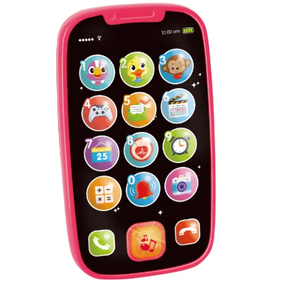 Divertisment și educație: Telefonul de jucărie este echipat cu butoane amuzante, melodii și dialoguri în limba engleză, făcând procesul de joacă nu doar captivant, ci și educativ.
