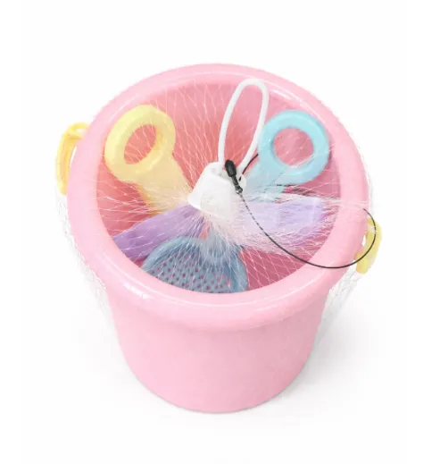 Setul de nisip cu găleată — un set excelent pentru joacă pe plajă, în nisipar sau la cabană. Setul include o găleată practică cu mâner și câteva forme colorate și accesorii pentru modelat în nisip.