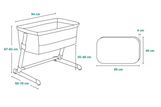 Caracteristicile tehnice ale patucului Co-sleeper 3 in 1 Lionelo Theo