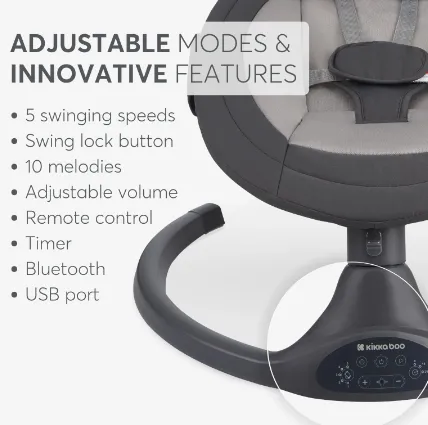 Funcționare silențioasă: Mișcare lină și fără zgomot, ideală pentru a calma bebelușul fără întreruperi.
