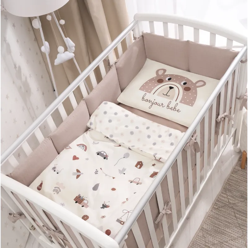 Setul Bonjour Bebe va fi completat cu bare de protecție din bumbac moale de culoare bej.