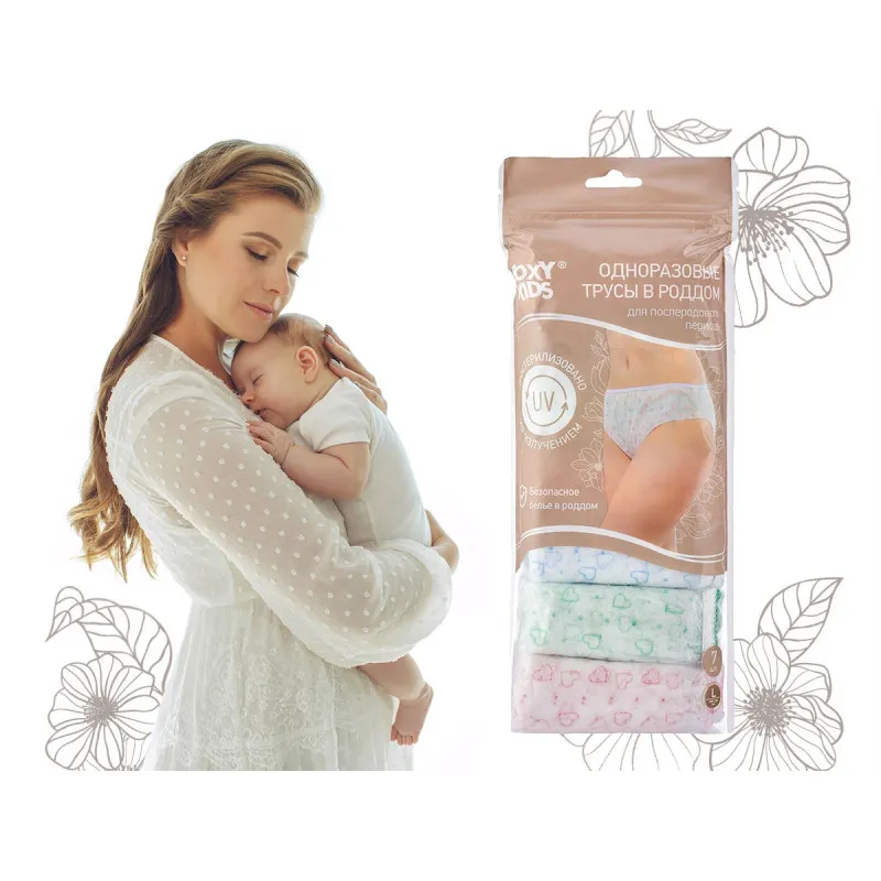 Chiloții igienici ROXY-KIDS de unică folosință sunt proiectați special pentru perioada postpartum și sunt confecționați din spunbond medical, care combină proprietățile respirabile și aderența ridicată cu stratul adeziv al tamponului postpartum.