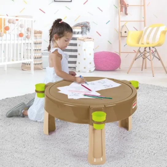 Masa de joacă multifuncțională cu nisip și apă este special concepută pentru a oferi copiilor activități interactive și distractive în aer liber. Aceasta permite separarea zonelor de joacă pentru nisip și apă, stimulând creativitatea, explorarea și joaca activă.