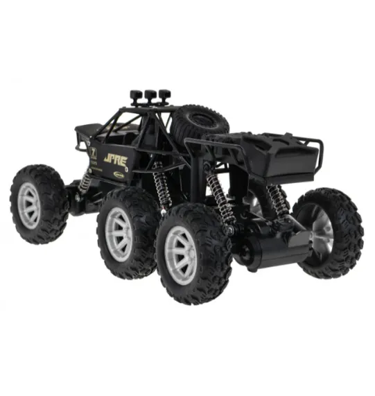Mașinuța metalică cu șase roți, de teren, cu telecomandă și tracțiune integrală, este destinată copiilor cu vârsta de peste 3 ani. Anvelopele din cauciuc și suspensia cu arcuri a fiecărei roți permit mașinuței să depășească cu ușurință orice tip de suprafață. Mașinuța este fabricată din materiale de înaltă calitate și are o carcasă metalică, ceea ce îi asigură durabilitatea. Jucăria este alimentată de baterii de 3,7 V (incluse) — pentru mașină și 2 x AA de 1,5 V (nu sunt incluse) — pentru telecomandă. Timpul de încărcare al mașinii este de aproximativ 2 ore, iar timpul de funcționare — de aproximativ 10 minute.