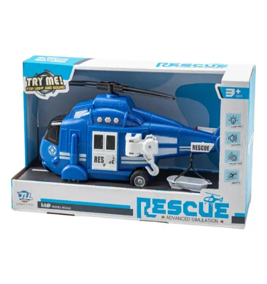 Elicopterul de salvare inerțial Rescue la scara 1:16 va deveni un participant indispensabil în misiunile de salvare ale copiilor. Modelul este realizat cu un grad ridicat de detaliere și este echipat cu efecte sonore și luminoase, care fac jocul cât mai realist posibil.
