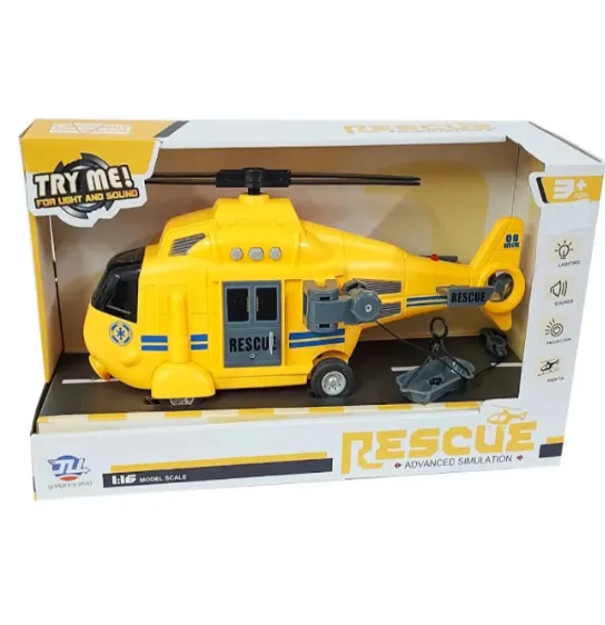 Elicopterul de salvare inerțial Rescue la scara 1:16 va deveni un participant indispensabil în misiunile de salvare ale copiilor. Modelul este realizat cu un grad ridicat de detaliere și este echipat cu efecte sonore și luminoase, care fac jocul cât mai realist posibil.