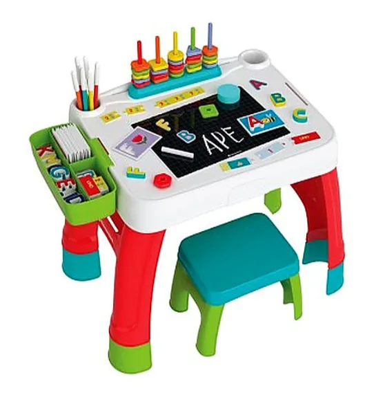 Copilul poate realiza exerciții simple, poate desena, studia simboluri și își poate antrena motricitatea fină, atenția, coordonarea mișcărilor și gândirea logică. Designul viu colorat și formatul multifuncțional fac din această măsuță o alegere excelentă pentru dezvoltarea timpurie.