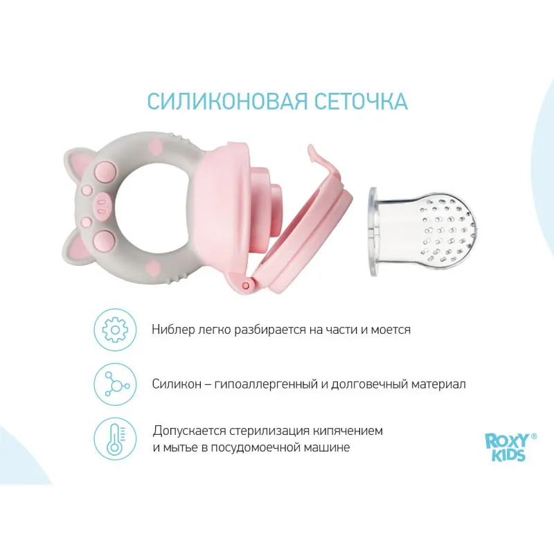 Niblerul pentru bebeluși de la ROXY-KIDS vă va ajuta să introduceți ușor și convenabil fructele, legumele și prăjiturile în dieta bebelușului dumneavoastră.