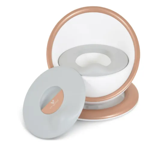 Olița este echipată cu un spătar înalt, care susține copilul într-o poziție corectă și asigură o ședere confortabilă. În același timp, partea frontală mai înaltă protejează împotriva stropilor. Recipientul interior detașabil este practic și ușor de curățat, iar capacul încorporat oferă protecție suplimentară și menține igiena.