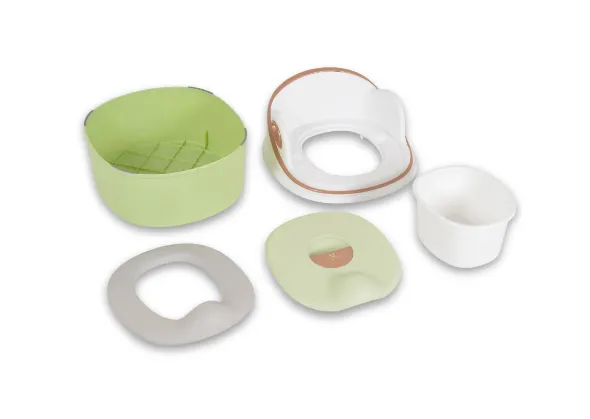 Poate fi utilizată ca oliță clasică, adaptor moale pentru toaletă sau treaptă pentru baie.
