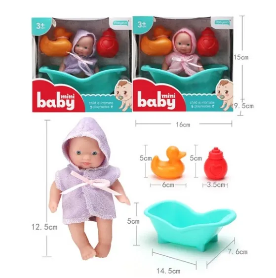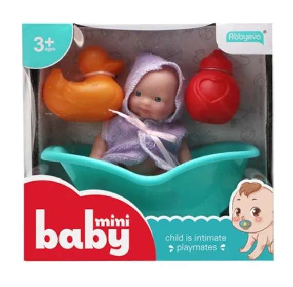 Cu bebelușul drăguț, fetița ta o să se simtă ca o „mamă adevărată”, care își pune cu grijă copilașul la băiță.