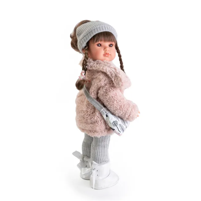 Păpușa Bella în haine gri-roz călduroase cu poșeta, cod 48306
