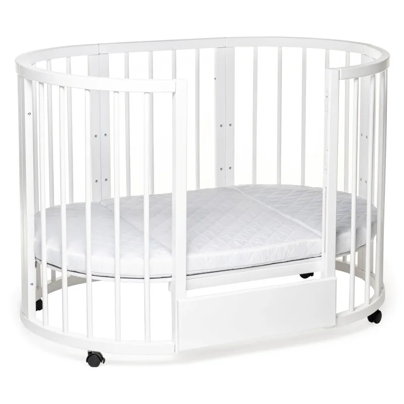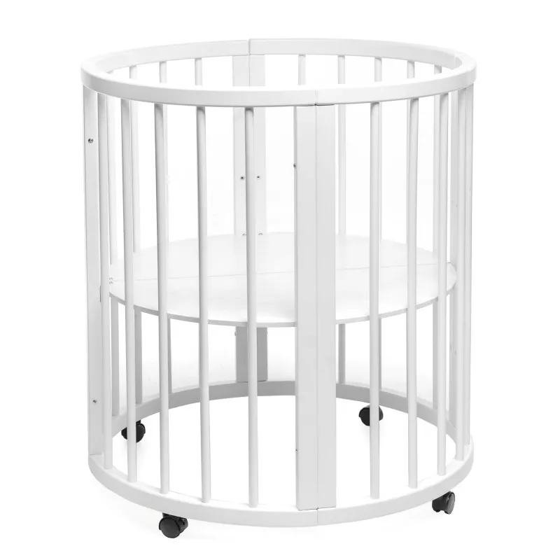 Pătuțul transformer rotund/oval Olivia a fost creat special pentru a aduce mama și copilul mai aproape - acum mama se poate apropia de bebeluș din orice parte a pătuțului.Este ideal pentru orice apartament deoarece colțurile „decupate” economisesc până la 40% din spațiu în comparație cu un pat dreptunghiular obișnuit!Marginile rotunjite nu vor permite copilului dvs. să se lovească, iar reglarea pe înălțime vă permite să ajustați pătuțul la nevoile copilului și ale părinților.Pătuțul vă va permite, de asemenea, să economisiți la achiziționarea de mobilier separat.Modalitățile de transformare:- Leagăn pentru nou născut 70x70;- Leagăn + mecanism de balansare transversal 70x70;- Masa de înfășat + rafturi;- Pat pe roți 70x120;- Pătuț + mecanism de balansare transversal 70x120;- Pat lateral fără perete 70x120;- Canapea pentru copil până în 3 ani;- 2 scaune pentru hrănire și jocuri, semicirculare;- Masă pentru hrănire, jocuri;