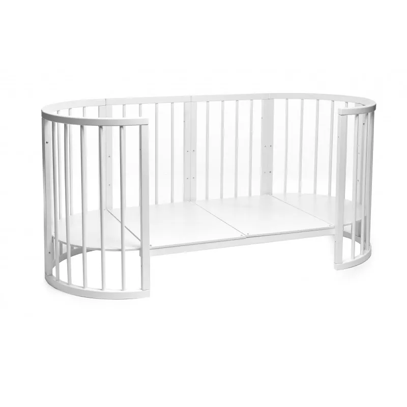 Pătuțul transformer rotund/oval Olivia a fost creat special pentru a aduce mama și copilul mai aproape - acum mama se poate apropia de bebeluș din orice parte a pătuțului.Este ideal pentru orice apartament deoarece colțurile „decupate” economisesc până la 40% din spațiu în comparație cu un pat dreptunghiular obișnuit!Marginile rotunjite nu vor permite copilului dvs. să se lovească, iar reglarea pe înălțime vă permite să ajustați pătuțul la nevoile copilului și ale părinților.Pătuțul vă va permite, de asemenea, să economisiți la achiziționarea de mobilier separat.Modalitățile de transformare:- Leagăn pentru nou născut 70x70;- Leagăn + mecanism de balansare 70x70;- Masa de înfășat + rafturi;- Pat pe roți 70x120;- Pătuț + mecanism de balansare 70x120;- Pat lateral fără perete 70x120;- Canapea pentru copil până în 3 ani;- 2 scaune pentru hrănire și jocuri, semicirculare;- Masă pentru hrănire, jocuri;- Canapea confortabilă pentru adolescenți 70x160.