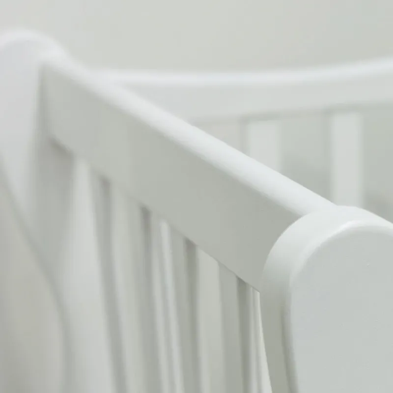 Toate detaliile pătuțului sunt lustruite cu grijă;