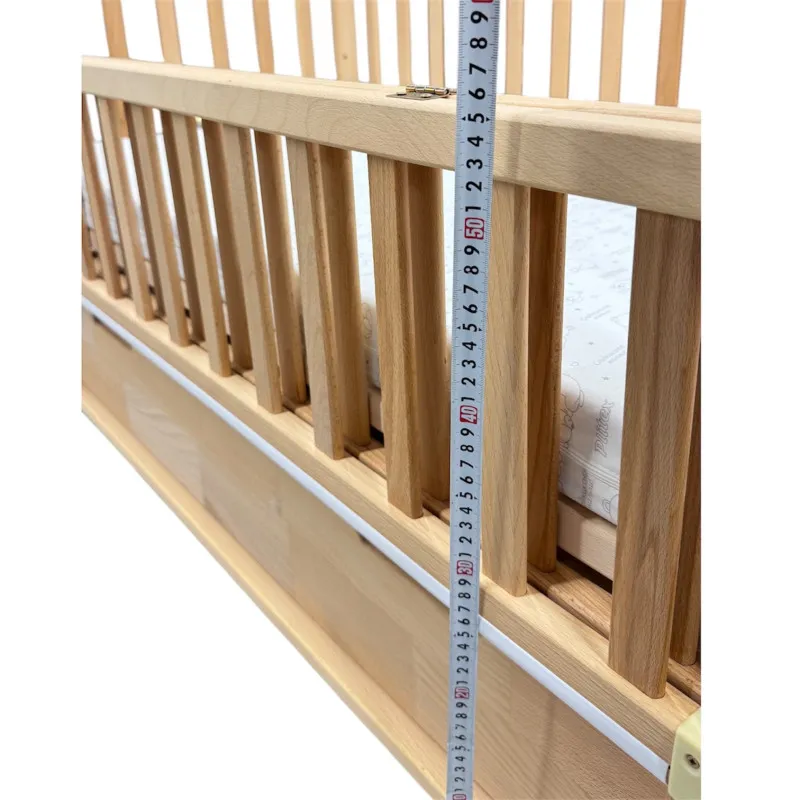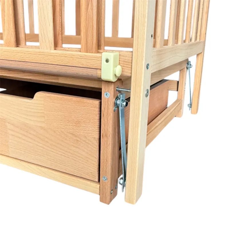 Patul are un perete lateral rabatabil, un mecanism de pendul silențios pe rulmenți;