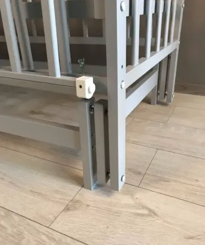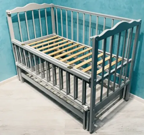 Peretele lateral din el nu coboară, ci se pliază în jumătate în două părți. Acest lucru face ușor să scoateți copilul din pat. În plus, acest design este mai bine gindit, făcând totul mai durabil.