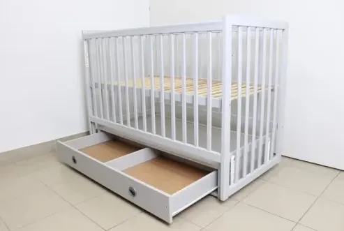 Pătuț Kuzya Sofia Gri pe balansoar cu sertar