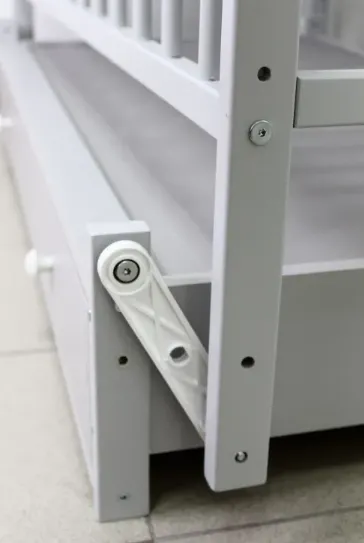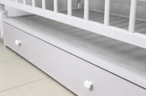Patutul Kuzya este realizat din lemn si este considerat cel mai sigur si de cea mai buna calitate pentru bebelus. Patul este realizat din fag și vopsit cu lacuri și vopsele pe bază de apă, toate colțurile sunt rotunjite, deci este absolut sigur pentru un nou-născut. Pentru confortul bebelusului patucul este accesoriat cu un mecanism de balansare, de asemenea, patul este echipat cu un sertar pentru lenjerie și o laterală pliabilă.