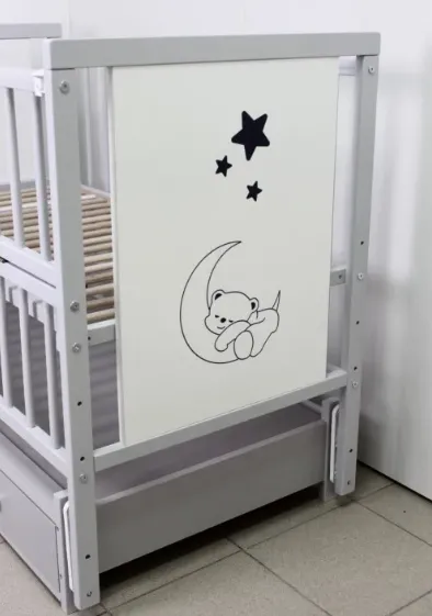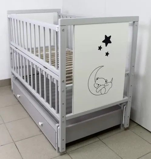 Pătuț Kuzya Urs Gri pe balansoar cu sertar