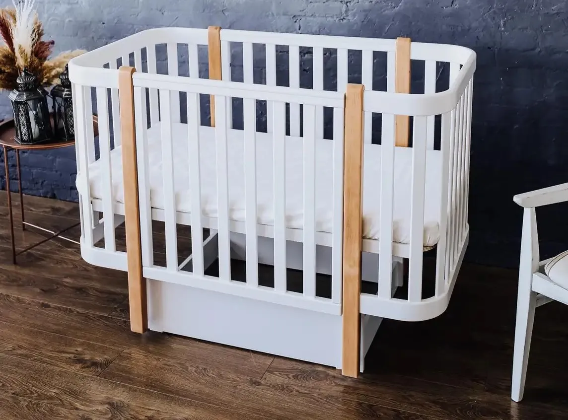 - trei niveluri ale saltelei cu posibilitatea de a instala saltea în poziția superioară la un unghi de 3° - pentru culcat confortabil pentru copil