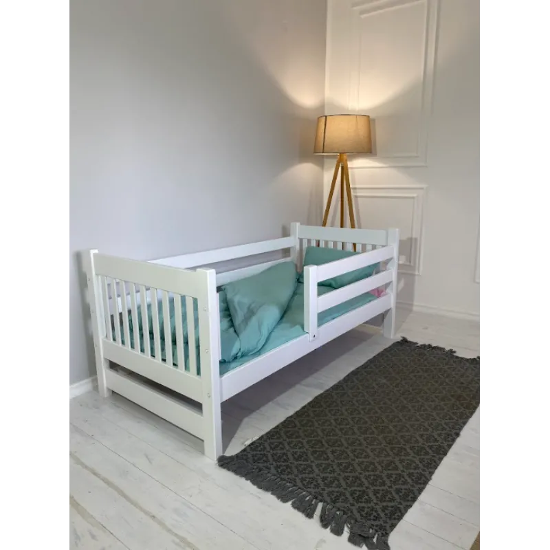 Modelul are deasemenea o latura protectoare pentru siguranta copilului, care, daca se doreste, nu poate fi atașată. Este realizat din lemn masiv de fag, șlefuit cu grijă și acoperit cu vopsea ecologică pe bază de apă.