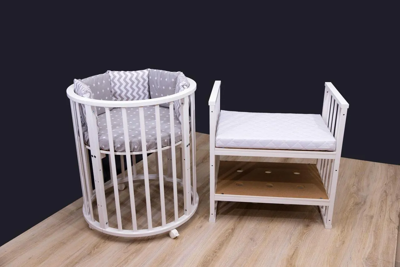 Patut "Sonechko" este realizat din lemn natural de FAG.Acest patut creste odata cu bebelusul tau, deoarece se poate transforma cu usurinta in: