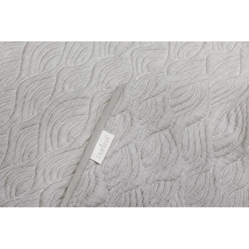 Cuvertura de pat elegantă în nuanțe naturale va proteja lenjeria de pat de praf și va fi un plus excelent pentru un interior modern.