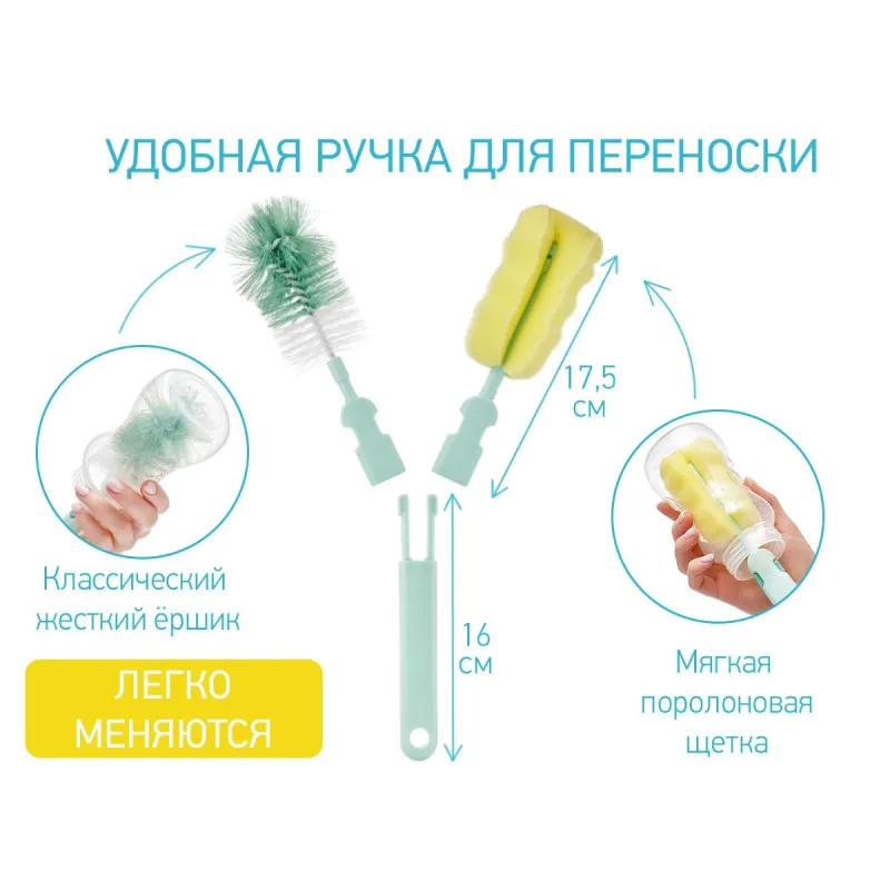 Setul de perii și perii ROXY-KIDS este conceput special pentru spălarea sticlelor, tuburilor, tetinelor și ajută la realizarea acestei proceduri zilnice cât mai rapidă și convenabilă posibil.