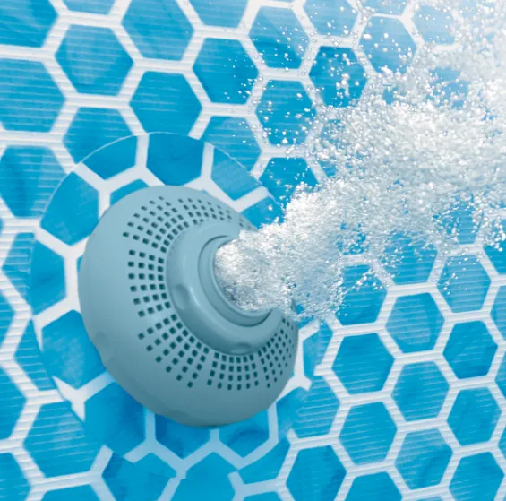 Piscina este echipată cu o supapă de golire, la care se poate conecta un furtun de grădină pentru evacuarea ușoară a apei. De asemenea, sunt prevăzute orificii pentru conectarea unei pompe de filtrare.