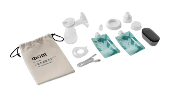Pachetul contine o serie de accesorii functionale care usureaza utilizarea pompei de san si depozitarea laptelui extras. Include: biberon de lapte (150 ml) cu tetina, 2 recipiente de depozitare, punga de bumbac pentru pompa de san, palnie universala, capac pâlnie si cablu USB.