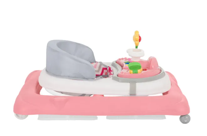 Scaunul moale cu spătar înalt oferă confort și susținere în timpul utilizării. Roțile frontale pivotante la 360 de grade și roțile din spate fixe asigură o manevrabilitate ușoară și o bună stabilitate. Siguranța este garantată de cele 6 dopuri de cauciuc sub bază, care protejează copilul de orice pericole.