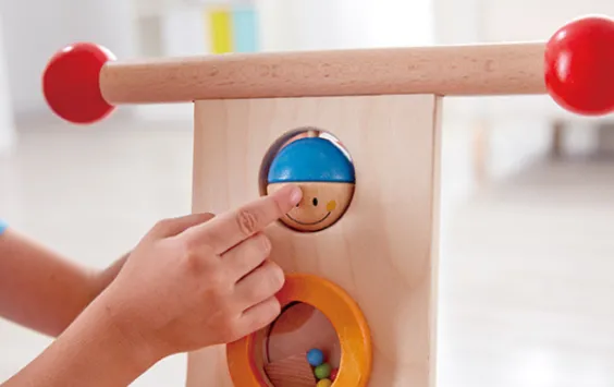 Antepremergător magic este completat cu detalii utile în dezvoltarea bebelușilor – roți dințate multicolore rotative, un labirint, mărgele, mânerul comod ușor în manevrarea jucăriei. Antepremergătoarul poate fi folosit și pe post de cărucior de joacă. Roțile sale sunt acoperite cu cauciuc, astfel nu lasă urme pe podea. Datorită ampatamentului larg, premergătorul este stabil.