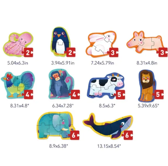 Seria de puzzle-uri „Animale”, 10 în 1, nivelul 1