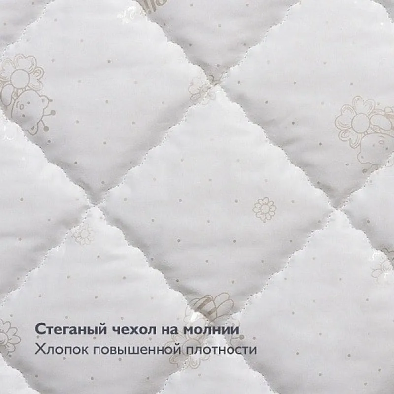 Стеганый люксовый чехол с поверхностью из натурального тика создает дополнительные условия для комфортного детского сна. Родители оценят практичность чехла: тик долго сохраняет свой вид и не протирается, а молнии по трем сторонам упрощают уход за матрасом.