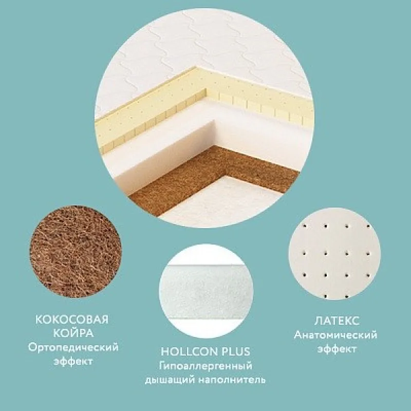 Особенность модели в сочетании лучших природных и инновационных материалов. Таким образом вы экономите семейный бюджет и получаете универсальный матрас, в котором все детали продуманы так, чтобы сон вашего ребенка был полезным и комфортным.