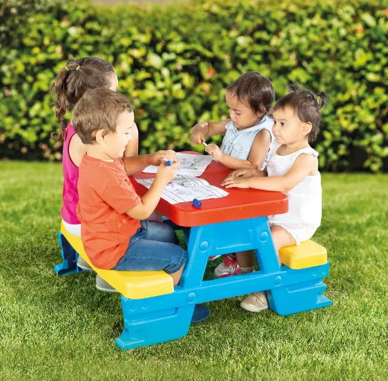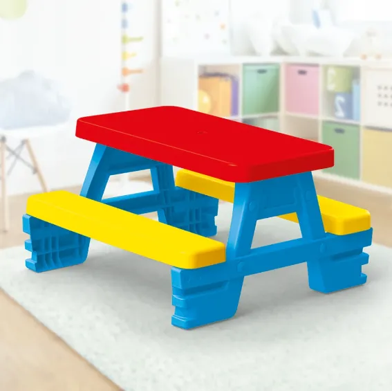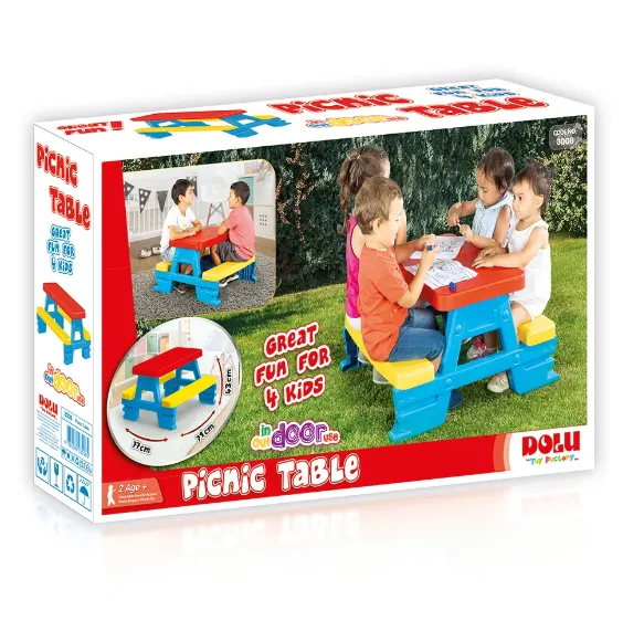 Masă de picnic pentru copii este ideală pentru activități de joacă, desen sau gustări, oferind un spațiu confortabil și practic pentru utilizare zilnică. Designul stabil și bine proporționat permite utilizarea în siguranță atât în interior, cât și în exterior.