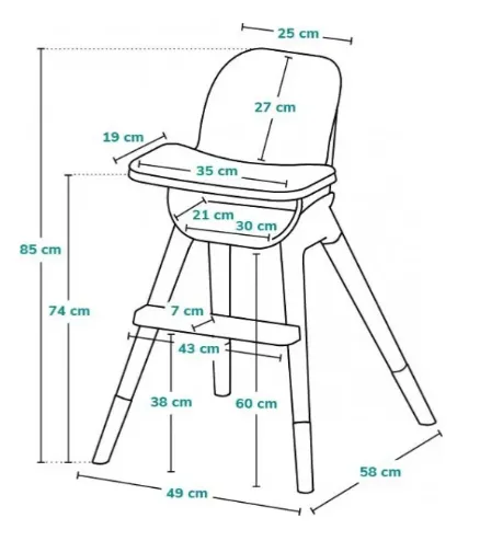 O structură reglabilă a lui Koen este realizată dintr-un lemn de fag durabil și plastic ABS . Finisat cu tampoane antiderapante, picioarele masive garantează stabilitatea și previn zgârierea podelei. Un spătar înalt și un suport pentru picioare care suspendă picioarele asigură confort și ajută la ușurarea coloanei vertebrale a copilului.
