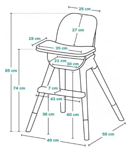 O structură reglabilă a lui Koen este realizată dintr-un lemn de fag durabil și plastic ABS . Finisat cu tampoane antiderapante, picioarele masive garantează stabilitatea și previn zgârierea podelei. Un spătar înalt și un suport pentru picioare care suspendă picioarele asigură confort și ajută la ușurarea coloanei vertebrale a copilului.