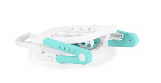 Scaunul are un design foarte practic, în culorile alb și mentă. Greutatea maximă recomandată: 15 kg.