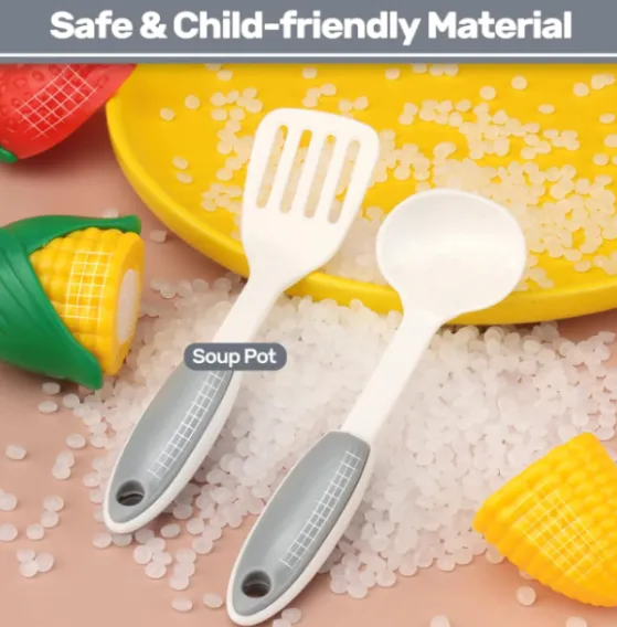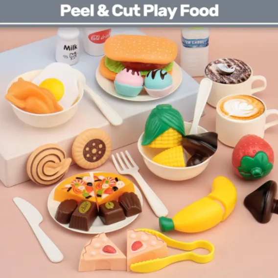 Diversitate de accesorii: include cuțite de jucărie, vase, un raft pentru deserturi și ustensile de bucătărie, făcând jocul mai variat și interesant.