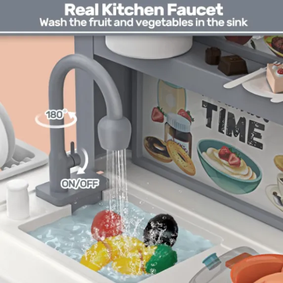 Chiuvetă cu apă curgătoare: ajută copiii să învețe să spele vasele și să-și dezvolte responsabilitatea pentru curățenie.